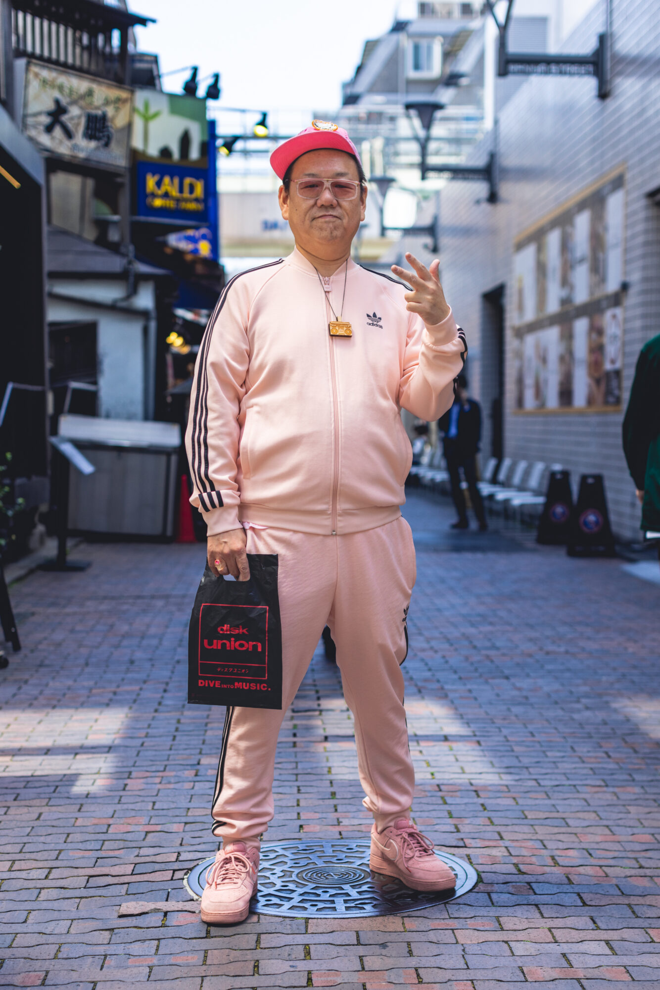 Although record-shoppers were few, I wasn’t the only one with this early-start idea. I quickly found out that the people who shop for records at 10am on weekdays are decidedly a different lot than the after-workers and weekend warriors. For the most part, they were far more pedestrian lot, maybe select-shop or fashion-boutique sales clerks in their plainclothes, off-duty services workers who’d had a good night’s sleep, and a few of, I’m guessing, the recently retired. The one somebody who stood out from the lot and captured all my attention was the one wearing a pink Adidas tracksuit, pink Air Force Ones, pink socks, pink hat, pink mask, some fly pink sunglasses with pink lenses, and not that I saw or asked, but no doubt pink drawers.