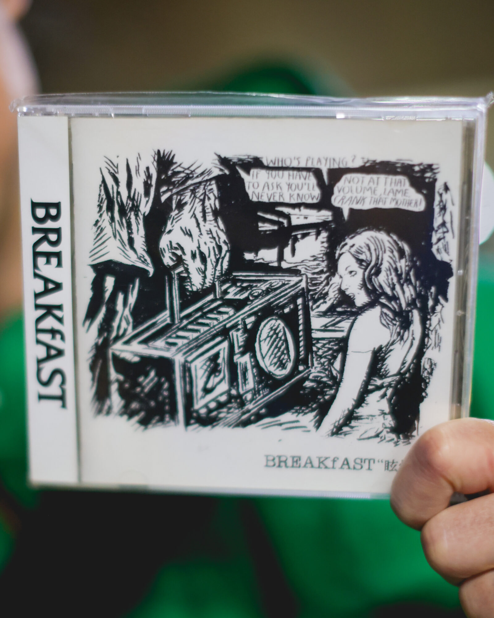 “Who are these two interesting and colorful characters browsing around in Shimokita’s Disk Union? Are they together? They must be. Oh, look! Dare I say he’s going to buy that record, wait, another! Maybe if I just look a little longer in the 45s, keep an eye on them, and then time the purchase of these outer sleeves right as they’re walking to the register, then I can conveniently walk out at the same time as them. Oh, good, Auld Lang Syne has been queued for the shop’s closing. Just wait a little longer, Brian. Wait a sec… could this be considered stalking? Surely not. But I think it is. I think this IS stalking… How can, Oh! They’re heading to the register. Go Go Go!”