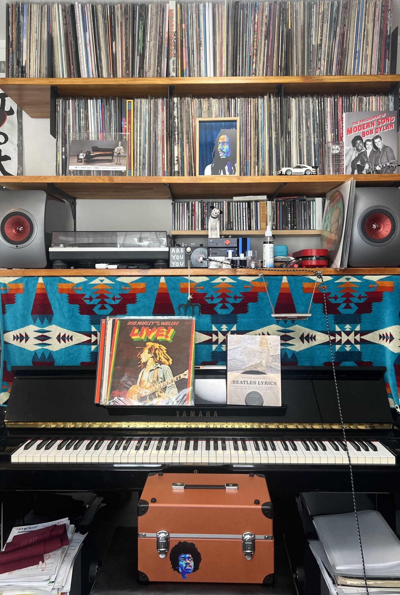 I found a temporary home for my beautiful blue Bob Marley on my record shelf, and a spot on my 7″ case for a blue Jimi Hendrix. These beautiful artworks are by the talented Miro, whose message is “Blue is Free, Blue is Nobe. Blue never discrimination. Please be encouraged to visit Miro’s Instagram and give him a follow.