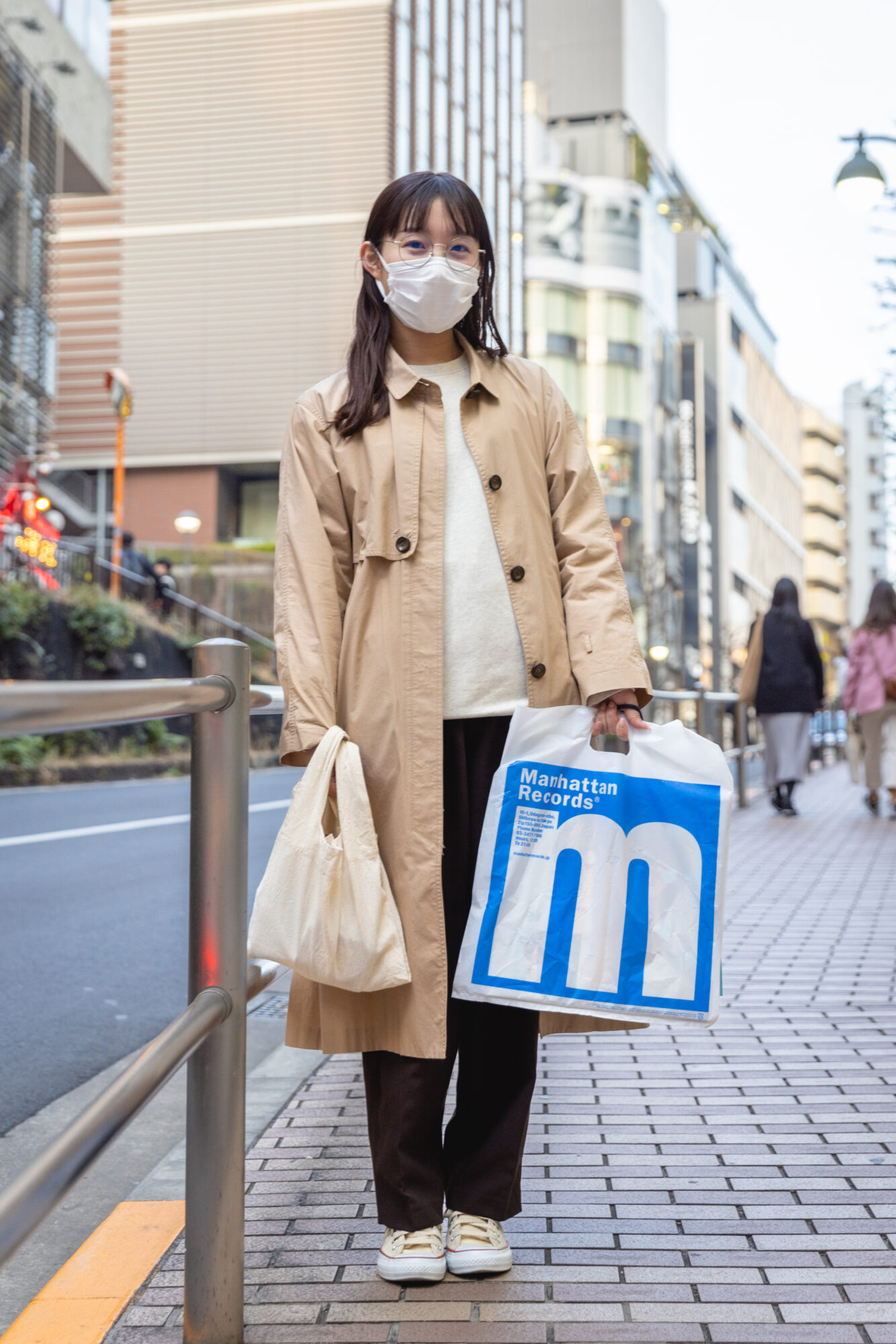 Now, if the intersection of “Inokashira Street and Organ Slope” doesn’t sound familiar, here’s a few Tokyo tidbits for you. First, know Inokashira Dori is the 20km street that starts near Inokashira Park in Kichijoji, runs parallel the length of the Inokashira Line (on which I live) and terminates near Shibuya station. Organ Zaka, or Slope, is in Shubuya’s Udagawacho backstreets, named so for the many music-related stores such as record shops, musical instrumental equipment stores, live houses, and nightclubs. The two streets intersect near Tokyu Hand’s B1 entrance, past the Police Box, en route to NHK. You know the one, right in front of the entrance of HMV, and closest traffic light to Manhattan Records, Face Records, Next Records, Nerds Records, RnR Music Garden, 2Tight Music, Ecostore Records, not to mention 3 giant Disk Unions: Rock in Tokyo, Jazz Rare Groove, and Shibuya Club Music, nor to mention about 4 or 5 other record stores that are literally a stone throw away from them, and then another 4 or 5 that are within a 5 or 10-minute walk. That little intersection, which I believe is officially called “Jinnan Shogako Kosaten” could prove to be a bottomless honey pot for Tokyo Record Store sitings. It only took standing on that corner for about 3 minutes before I spotted Erika coming dong the street caring a 12” vinyl bag from Manhattan Records.