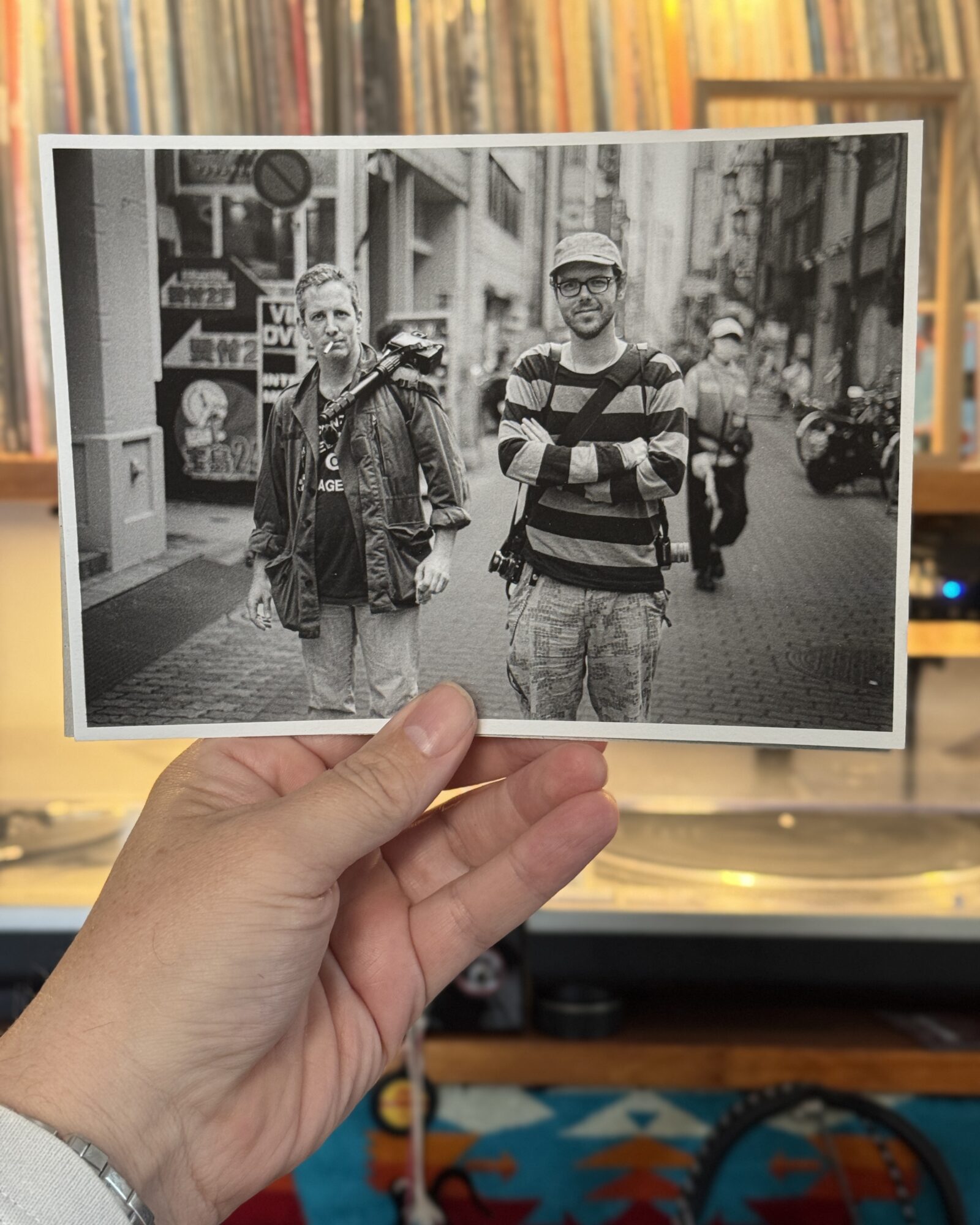 Yes, yes, yes. It all comes flooding back to me now. I know Michael, yes, by his name Michael Leoncini, but more by his internetting alias, Frank Breech …THE Frank Breech, who we used to hang and shoot the streets with WAY back in the day, like MySpace days, Flickr days, Zebrio days, Japan- before-iPhone days, paper map days. “FRAAAANK!!!! Amazing to see you! Wonderful (though foggy) memories flooding back …of Leica cameras, Tri-X, street beers and smoky bars, pop-up exhibitions, photo walks, even Mike’s surprise engagement to his lovely, arranged for which Frank arranged ol’ Jim O’Connell and I to shoot from two different angles at Ueno Station WAY back when. I have no idea if we ever “got the shot” of Frank’s engagement, but he certainly got one of me and Jim that day, a print of which he presented to me this day of our re-acquaintance, and after all these years, a forgotten photo from nearly 20 years ago!