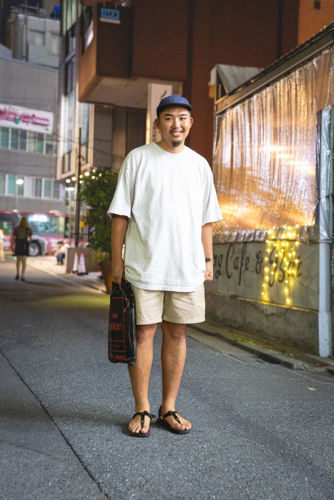I came across Hiroto having some solitary sidewalk respite on a quiet Shibuya back alley off the beaten path. He was sipping a cold beer admiring a couple of records he had just scored. He seemed mostly unphased by my noisy motorcycle and my non-native Japanese as he stood up and was nothing but smiles, quickly agreeing to a chat and a photo.