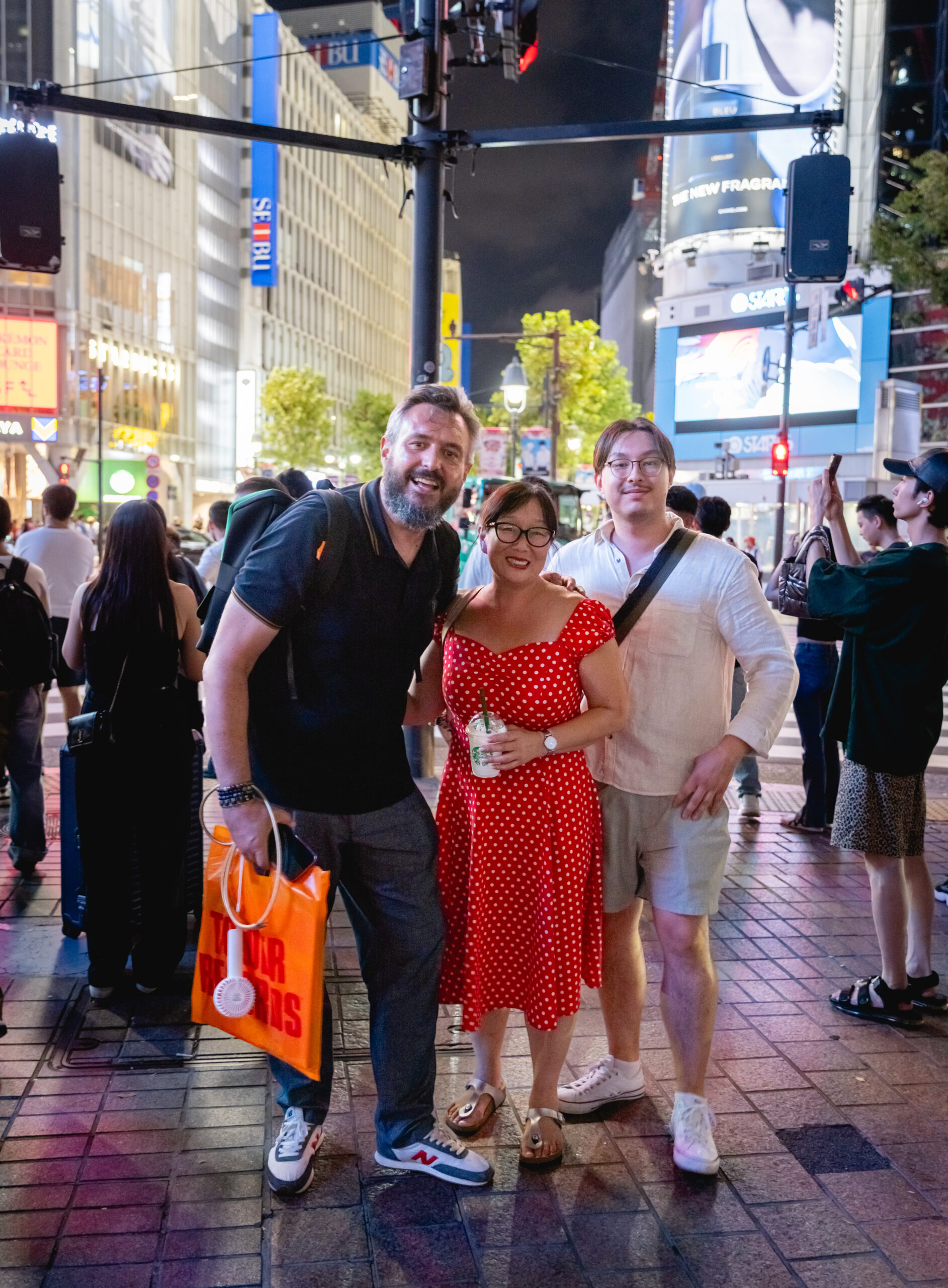 Back on the streets of Tokyo and in front of Shibuya Station for another edition of Vox Pop – meeting people on the streets of Tokyo and chatting them up about their recently scored records, essentially just Tokyo Record Style with a video element. After chatting up a colorfully hip squad from Dublin, Ireland, then a youthful teenage troupe from Lumbini, Nepal, then a national anthem-singing patriot from Dhakar, Bangladesh, then a pair of young Americans backpacking their way across Asia on a shoestring budget, next them K-Pop-loving posse from Chengdu, China and prior to meeting meeting Davide and his wife and parents from St. Petersburg, Russia, (you gotta check the Tokyo Record Style Vox Log archives from September 16th, 2025 – Link to YouTube in bio), I met Jean François and his lovely family on their first day in Tokyo from Dour, Belgium! Bonjour, and Yōkoso, Jean François! Welcome to Japan!