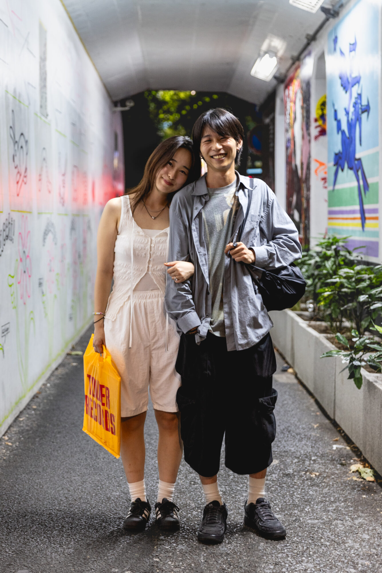 I met this smiley young couple on the back slope of Organ Zaka under the Miyashita Park and Yamanote Line underpass. They were just around the corner from Tower Records carrying that iconic red/orange/yellow bag and I immediately pulled over and chatted them up. I often pull this maneuver, spotting somebody walking down the street, safely but suddenly hitting the brakes and start chatting them up in Japanese with my sunglasses and helmet still on. Maybe they should cringe, feel accosted, and run the other direction, but the reaction is usually to freeze, stunned perhaps by the whole onslaught of unexpected counter-intuition, compounded sensory overload, like a flying saucer landing in their cornfield. Add onto that another layer of disorientation that comes with visiting a foreign country, particularly Japan, which Ji Eun and Homin were doing,