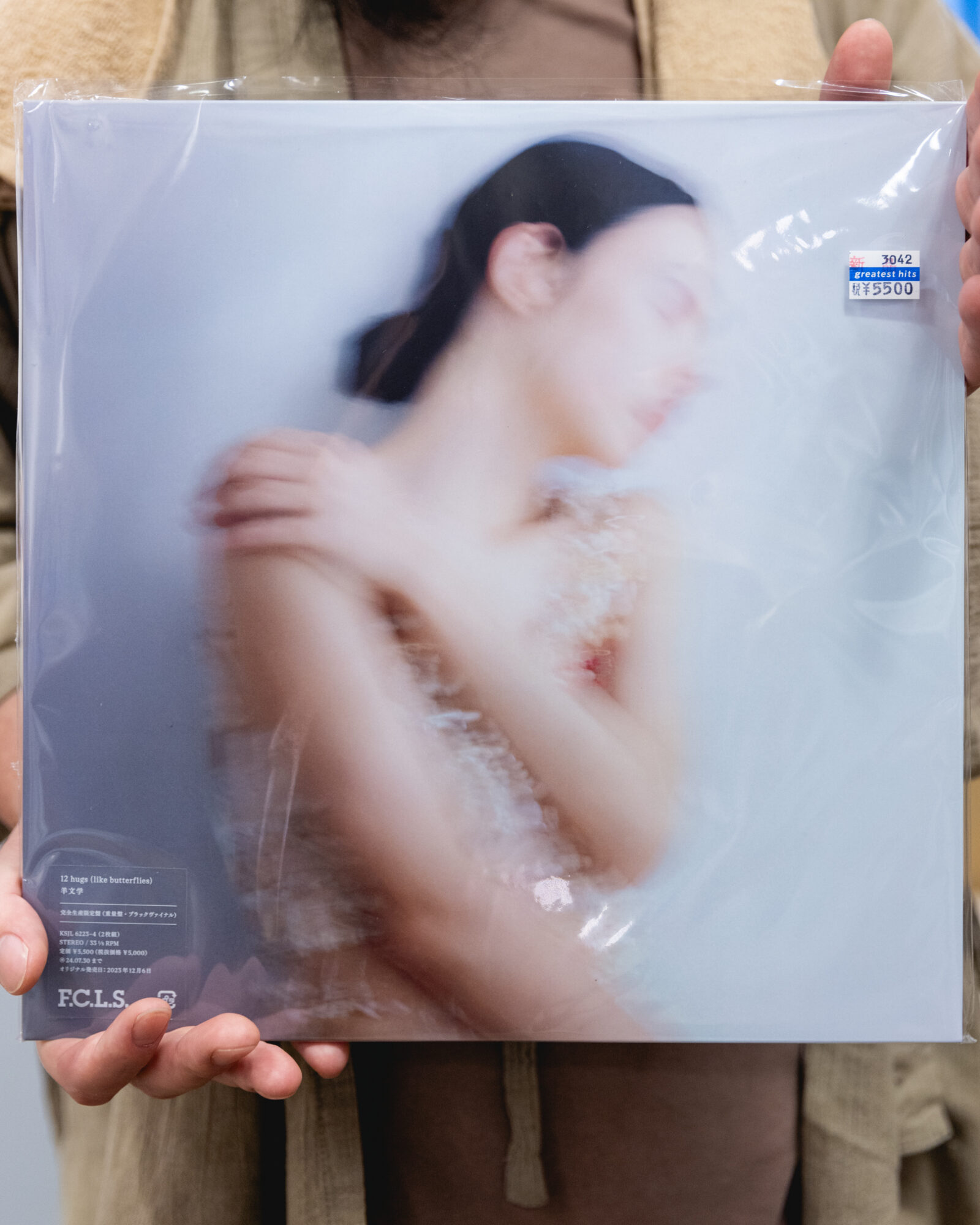 Jun told me that he loves all the kinds of music that makes him feel good, adding that he is a vocalist and started singing in clubs long ago, so he particularly loves vocal works and works that emphasize lyrics. “My favourites are Stevie Wonder’s Innervisions, Chiaki Naomi’s works in general, and more recently “Hitsuji Bungaku”, which again is the record he’s photographed with. (FYI “Hitsuji Bungaku” means ‘Sheep Literature’ in Japanese and is an all-girl, alt/indie band that got their start in high school. They are composed of Moeka Shiotsuka, Yurika Kasai and Hiroa Fukuda, and they really rip and are worth checking out. And this album cover was photographed by a friend of mine, Nico Perez.