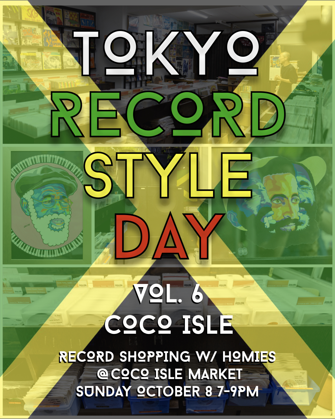 I’m really happy to shine the Tokyo Records Style spotlight on Kazuki from Coco Isle Music Market, a well-established and beloved Reggae records specialty shop in Tokyo. But what’s a more honest way to put it, is that I am really happy to be IN the spotlight OF Kazuki, because as one of the most friendly and knowledgeable record shop owners that you will meet in Tokyo, to spend any amount of time with him is to brighten your day (or night). It’s also easy to tell that all the positive vibrations Kazuki regularly absorbs through music across 2 decades of running Coco Isle and pumping the place full of roots rock, ska, rocksteady, reggae, dub, and dancehall, as well as from what very well might be the largest collection of Hawaiian Raggae in Japan (if not the world), has elevated his consciousness and made him quite an irie dude.
