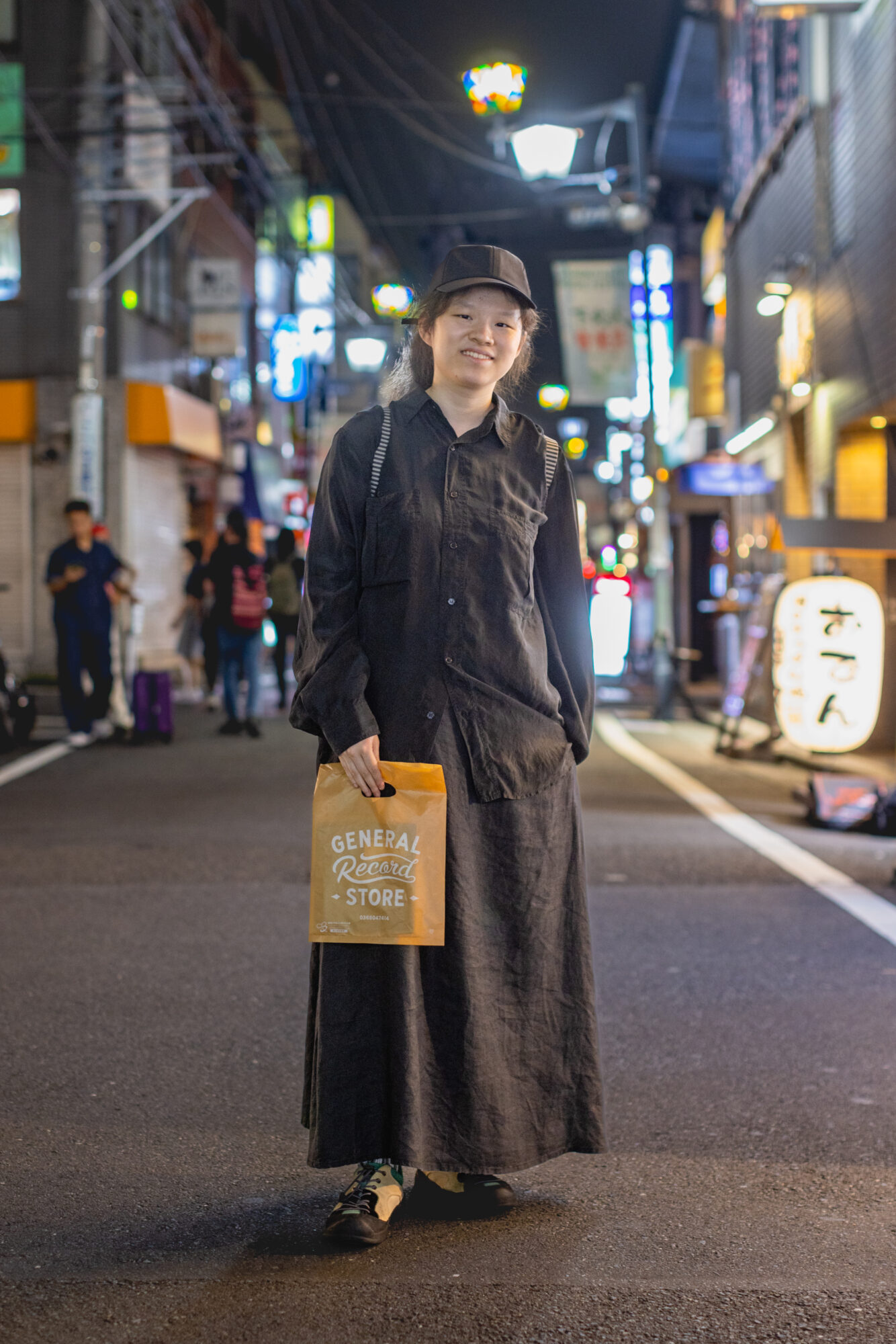 Even though I’m big, furry, and brutish, and accosting strangers for unsolicited street portraits, Klein wasn’t at all intimidated, in fact, quite the opposite, overflowing with congeniality and willingness to share, so much that it even caught me a little off guard, matching my own enthusiasm to meet her, not a common occurrence. She shared with me her love of Tokyo, of the States, love of learning, and of art and design, stating that she studying to become a graphic designer and wants to bring what she learns studying abroad back to China and to help elevate China’s graphic design sensibility – really quite an ambitious declaration that impressed me (and made me question myself: “What am I trying to elevate?”)