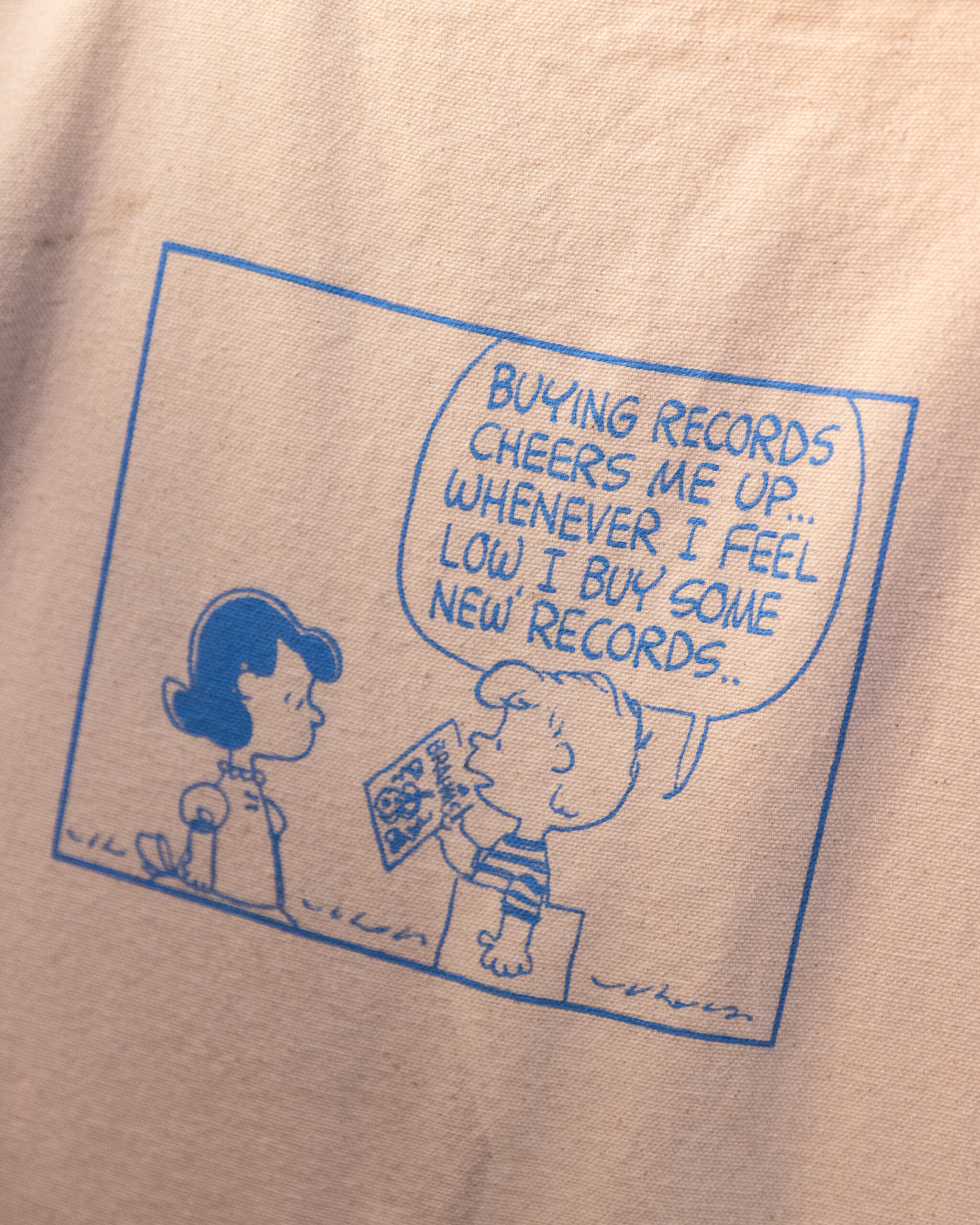 I loved her white jacket on all-black sense, her funky-chunky specs and hunky-punky boots, and her cool tote, with some sound advice, no pun intended, from Peanut’s favorite music aficionado, Schroeder. Laura’s spirit was bubbly, her character had character, and her affection for music and records was much like that beaming smile she so freely shared was certainly contagious. Can’t you tell from these photos?