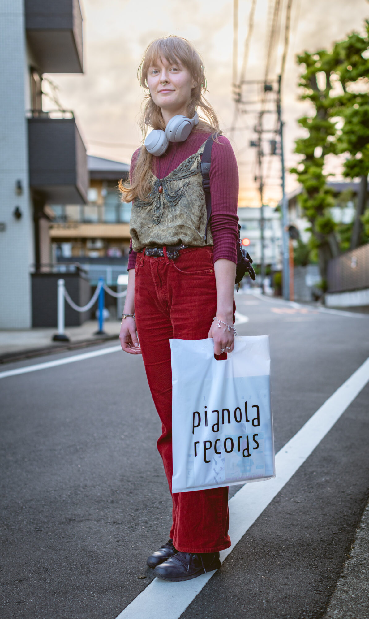 As the sun was setting on my crosstown traffic home, serendipity shone one last beam upon me, illuminating this crazy diamond, whose name I’d eventually learn was “Mai”, but spelled “Maj”, wandering back streets of Shimokita far, far away from her home in The Hauge. Her crimson clothes and fair hair starkly contrasted the muted neighbor tones of Tokyo, and the evident inquisitiveness of her stride and gaze, and the proximity of the encounter to curiously-curated Pianola Records, all of which I was synthesizing in a matter of seconds, gave me no doubt that she was very likely a little enigma worth investigating me.