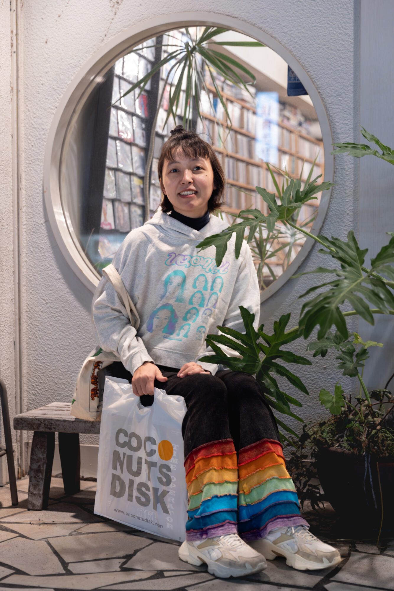 In the end unfortunately I couldn’t quite find the most flattering light quickly enough to let her on her way. The ground-level spotlight that illuminated the alligator on a leash Coconuts doors looked good on the croc (and perhaps Crocs) but not so much on lovely human faces (on which we like to see light come naturally from above) …but it just means I’ll need to visit this shop again, perhaps meet Makiko there again. But if not there at Coconuts Ekoda, I have a hunch I’ll see her out somewhere else in Tokyo. Judging by her tastes in records, and her online presence of making art, music, and leibenskünsling, she, like Ekoda itself (and I say this with love) is probably, in more ways than one, “a bit out there” too.