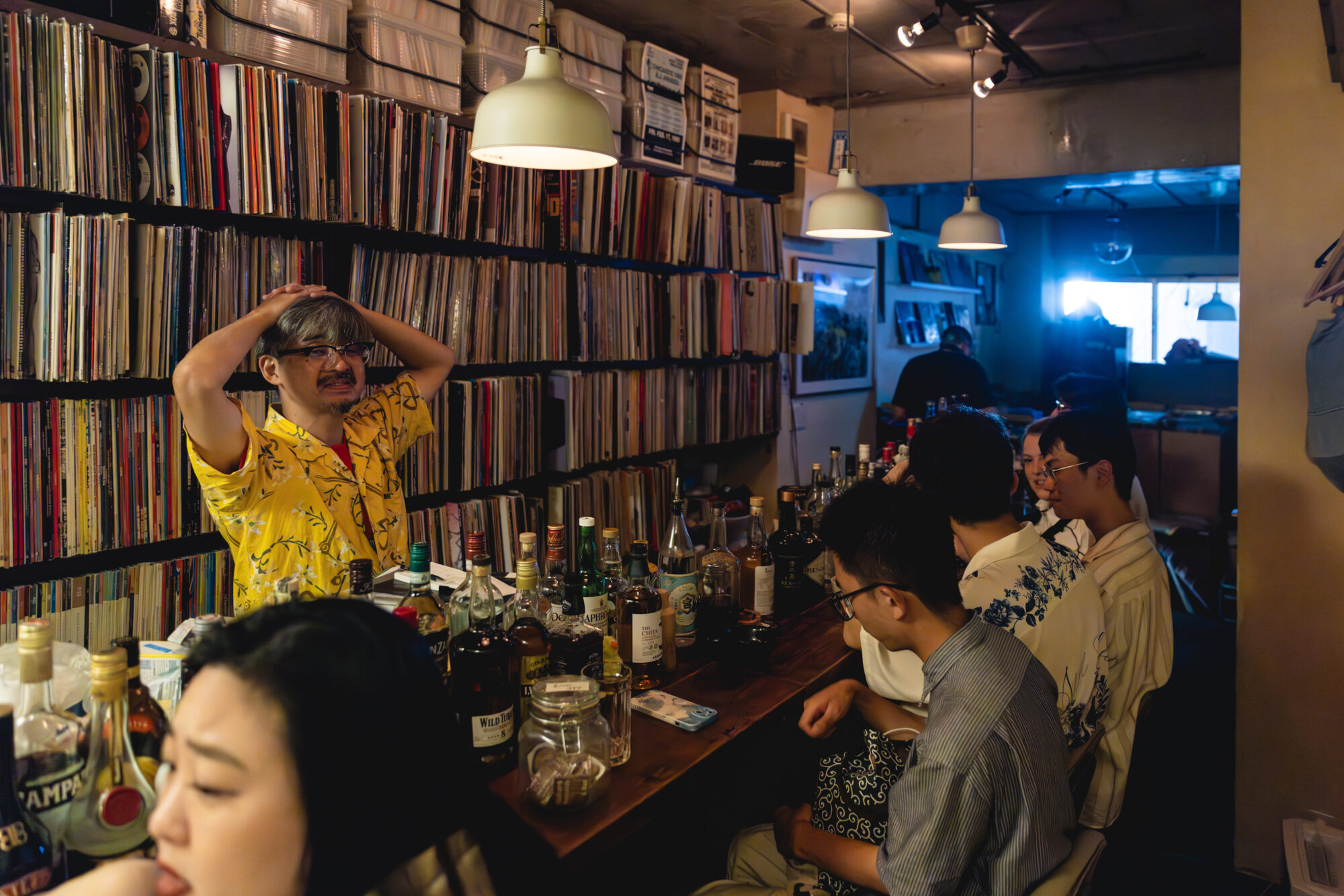 “What the hell, you only live once, let’s see where this leads…” I thought to myself, and upon venturing up the stairs behind Makoto, and entering the door on the 2nd floor, I realized that I was stepping into… “OH THIS PLACE!” …the Upstairs Records that I had heard, seen, and read about many times, and not in fact, some stranger’s flat. Having said that, after laying eyes on Makoto’s stupefyingly huge collection (I’d later find out it contained 50,000 records), his sound system and massive speakers, the …ahem… seemingly “organizationally-challenged” nature of the shop section (Upstair Records is a Bar AND a Records Shop, that opens from 9pm) and then after having read a fantastic short story written some years ago about Makoto’s Brooklyn semi-secret Bedroom/RecordStore/SpeakEasy “Weekend Records”, beloved by some of New York’s most music-loving vinyl junkies, I could tell that Makoto was not only an expert at blurring the lines of record shop/bar/bedroom, but that he was obsessively resourceful at acquiring records and deeply knowledgeable about the entire breadth of music.