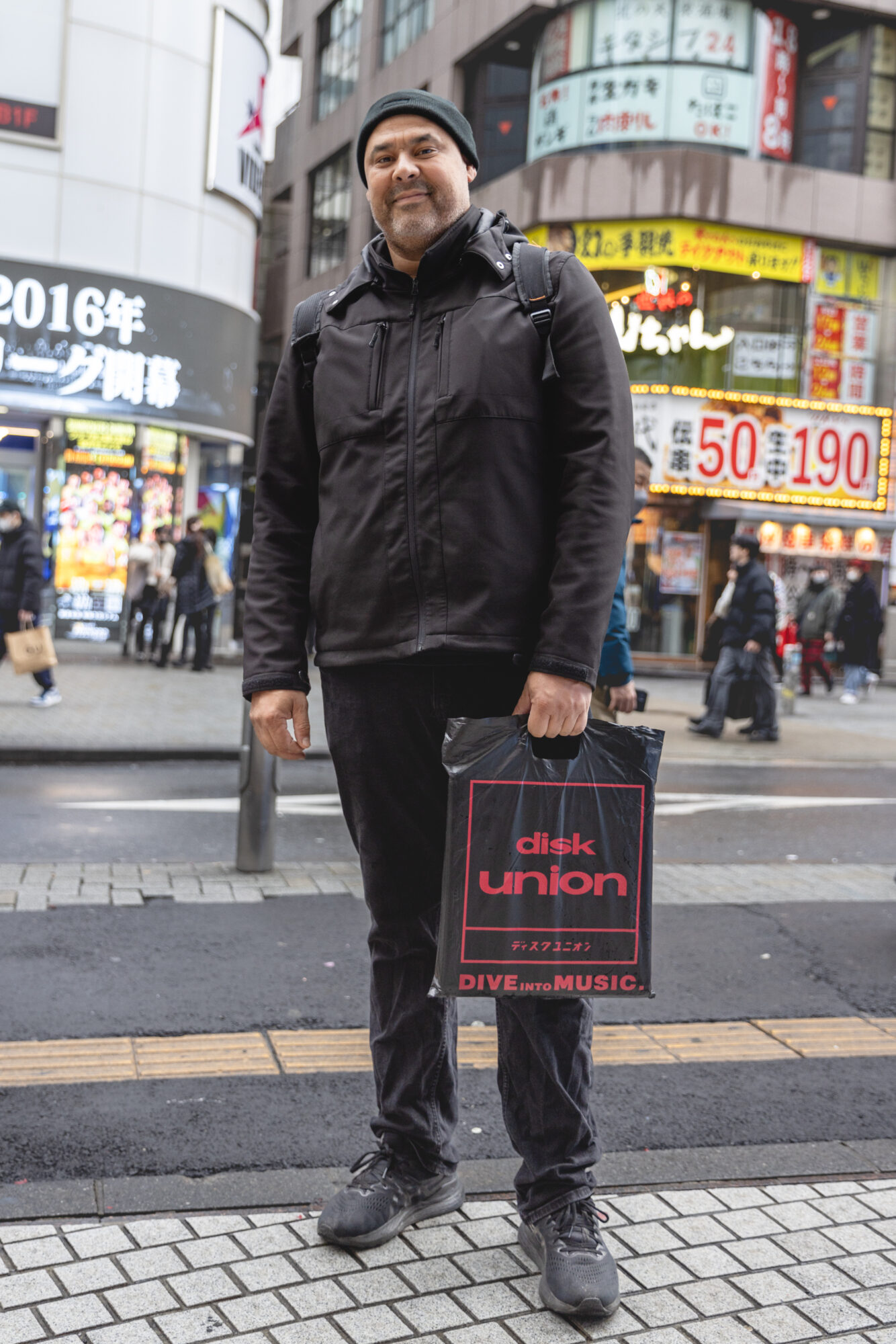 I met Marlon from Sydney on the back streets of Shibuya in the Udagawa district along with a pal he had just made, Miguel from Spain (who will be featured in the next post.) Talk about friendly, it was easy to recognize that Marlon’s charisma was as big as his heart. He was keen to be photographed for Tokyo Record Style, and chat me up about the records he scored, a rather sizable lot that ran the gamut of genres but mostly 12” that would get your booty shaking on the dance floor.