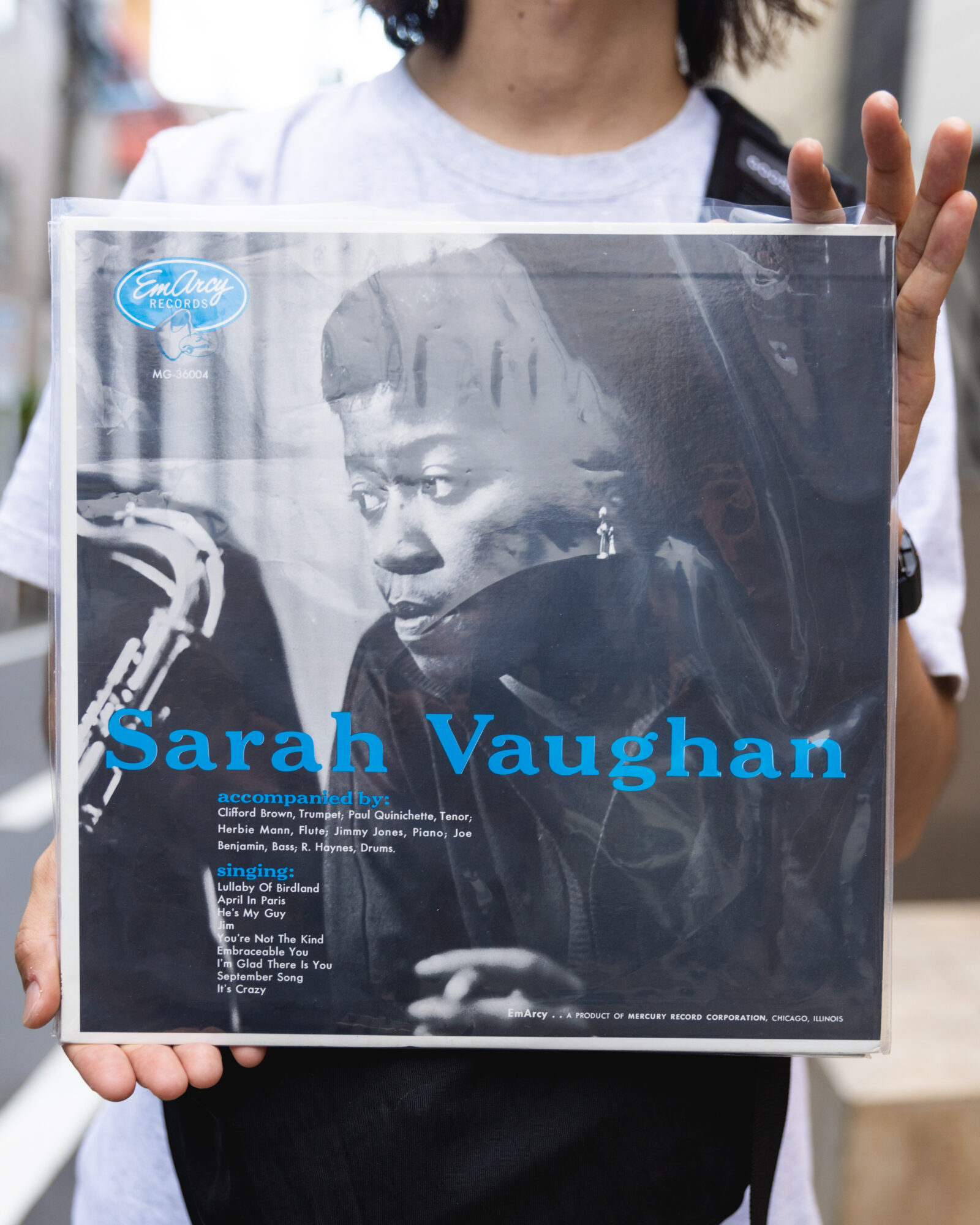 So I paid a visit to Tent again a week or so back and ran into a music-loving FAMILY – Dad Miori, Mom Ayaka, and little baby Uta. Dad is an engineer, Mom is a piano teacher (get in touch if you need lessons in the Nishiogikubo area) and little baby Uta (which by the way means “Song) in Japanese has been listening to records since en utero. Miori mentioned to me that I didn’t quite catch in Japanese but that the interesting record selection they made today at Tent was for little baby Uta’s listening pleasure, maybe she’s already a big Sarah Vaughan fan. I wouldn’t be surprised.