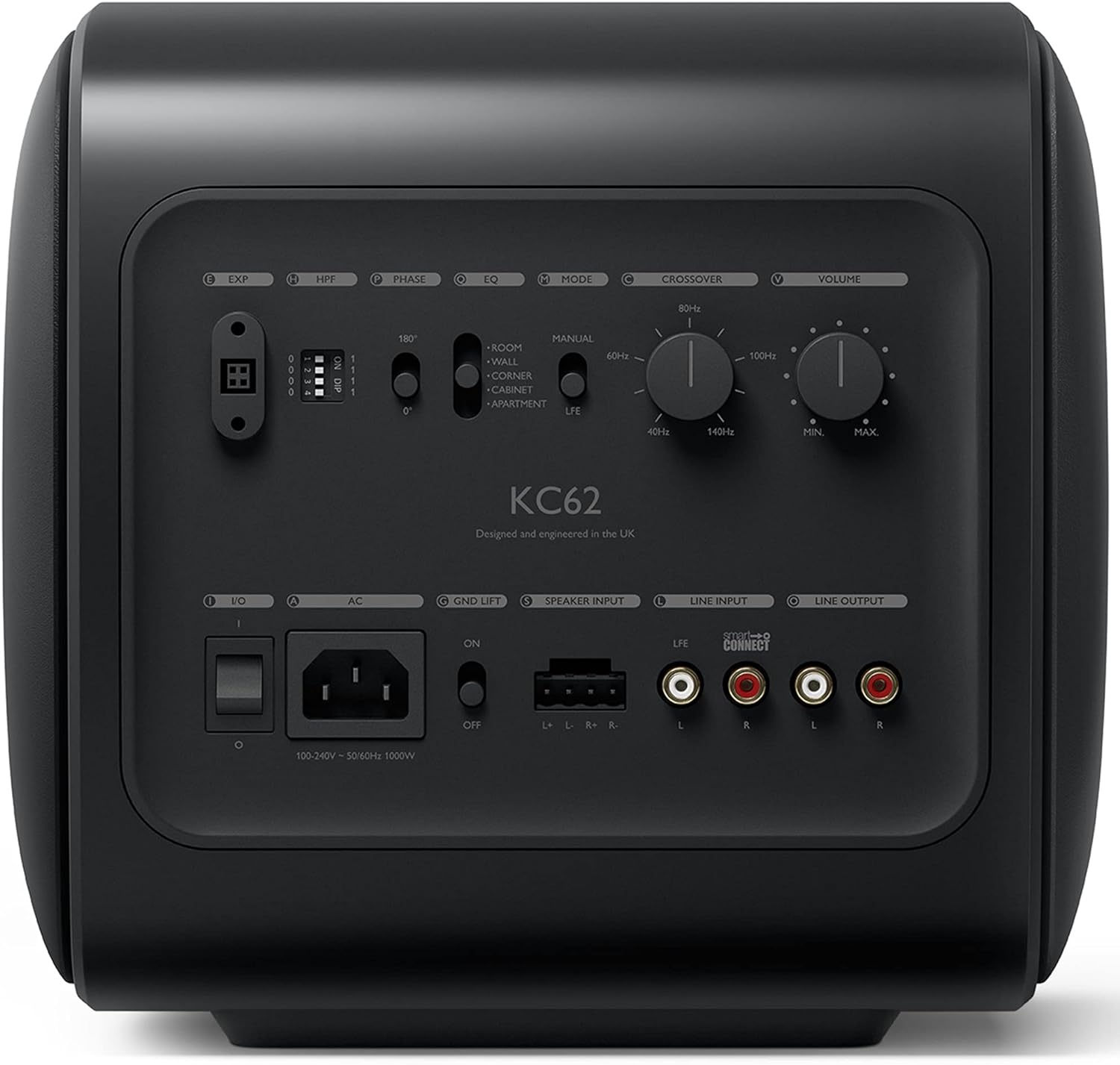 KC62 は信じられないほどコンパクトなサブウーファーで、深く正確な低音の可能性と魔法を提供し、夢中になる音楽、映画、ゲーム体験を提供します。 画期的なUni-Core™テクノロジーを含む革新的なKEFエンジニアリングを使用して作られたフットボールサイズKC62は、特別に設計されたクラスD増幅1,000W RMSで駆動する6.5インチフォースキャンセルドライブユニットを2つ備えています。