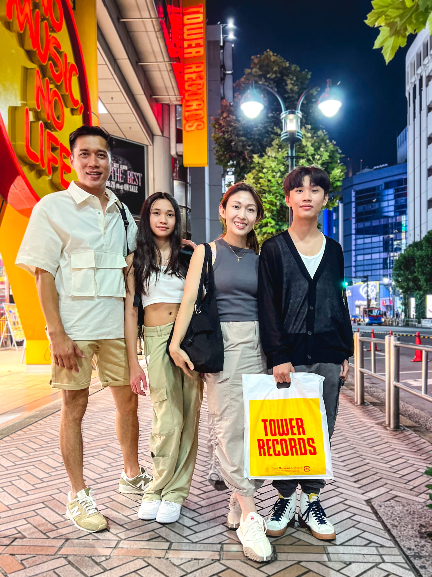 “Oh! It’s a family affair I see! At the record store! Quite rare, but not completely unheard of! Hi, everyone! I’m harmless [read: Friendly Bear of the Strange Woods]. The name is Brian,” and “Yes” (I can say confidently), “Though I may not look like the other bears around, these parts, WELCOME to our fine city! And well done, (obviously hip) mom and dad, for encouraging a healthy love of music with record store splurge at 9:30 pm on a Monday Night while visiting Tokyo on vacation from Bandung, Indonesia!!” …and on, and on, is basically what I say to them as I meet up, and mix up with the entire Wirantha-Lagarde family!