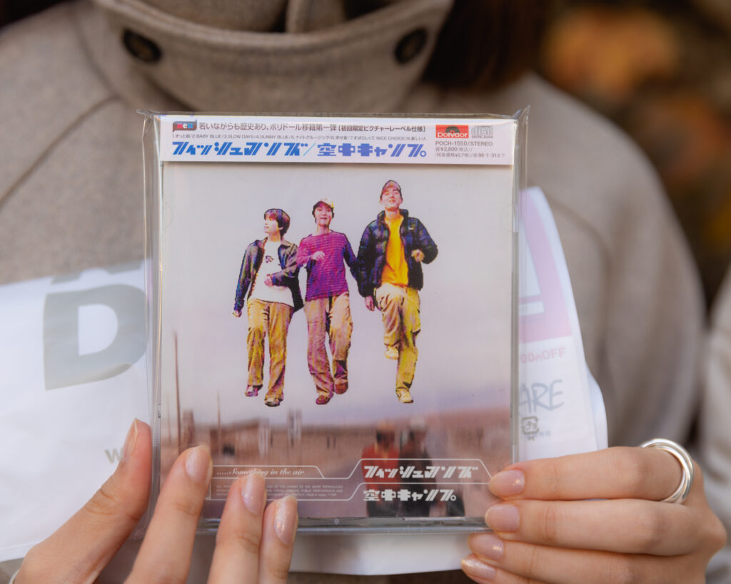 I met these two lovely ladies, Saki and Tomoka outside Coconuts Records in Kichijoji, which has become one of my favorite record stores in Tokyo. I’ve lived just down the street from Coconuts for more than a decade but only discovered it in the last year or so. Saki and Tomoka were super friendly and smiley and willing to pose for me. Saki scored Yuming’s City Pop classic Pearl Pierce (1982) in seemingly perfect condition with obi and beautiful green color to match the beautiful music on it – I just listened to the album for the first time and it’s fantastic – nice taste, Saki – I don’t know you but it seems to perfectly match your vibe! Tomoka hesitated to pose cuz she hadn’t bought an LP, but rather some essential Dream Pop listening from 1996 on the format of the day – CD! – Fishmans’ seminal Kuuchu Camp AKA Aerial Camp, about which my good pal and music aficionado James Hadfield wrote in a 2019 article for The Japan Times, that, along with Fishman’s album Long Season “are now undisputed landmarks in the Japanese rock canon.” So Tomoka, instant street cred for such a supremely excellent selection. Tokyo Record Style is really about loving music, not only about records! We don’t discriminate! LPs, CDs, Tapes – So long as they play, we love ‘em all! Hope to see you lovely ladies out there digging in the crates again!