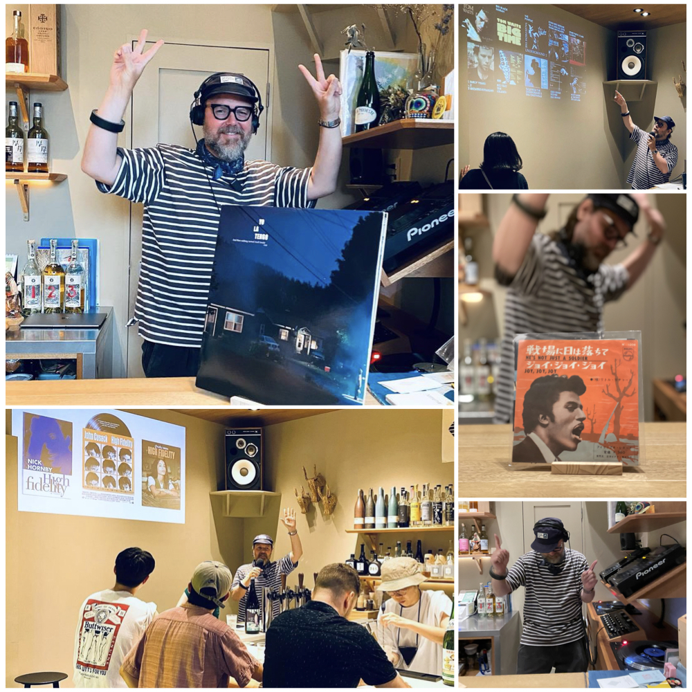 Sending a giant thank you out to all who came to share an afternoon and early evening of music appreciation and record-loving at Top 5 Records – Volume 15 “On the Road Again”. After an 8-month hiatus we found an amazing new home at Bar Kurage adjacent Mustard Hotel in Reload Shimokitazawa. This new space, run by the supremely cool and contagiously fun Wataru san and the lovely and smiley Haruka, made for a wonderful event. It’s a beautifully designed bar, stocked with all kinds of premium flowing deliciousness, and has an outrageously nice DJ rig, replete with brand spanking new Technics 1200 and CDJ-900s, gorgeous Urei rotary mixer, hawt Accuphase preamp and some phat-ass JBLs …sound-treated walls and ceilings, plenty of space, the works! I’m telling you: Luxury