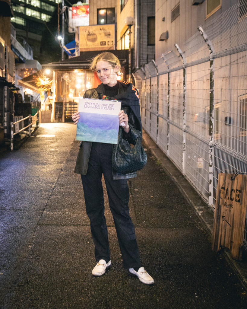 Anyway, this coooould get a little insane. For now, I gotta send a big apology to beautiful @suewilliamson and @totalhardass who scored some records at FACE while on a visit from L.A. I was scrambling, excited, and scatterbrained to get the shot, that I failed to get the goddamn shot, at least a good one, not noticing the unflattering light and shadows. And the full body pose, which is meant to capture people’s style, doesn’t need the actual records in it, but rather just the shop bag, maybe. So I think I need 3 shots if possible: 1. Bust-up with the record (to show the personality), 2. Close-up of the record (for musical appreciation) and, 3. Full length to show people’s style. So sorry again to Sue and her pals (@totalhardass – great handle – and @_mwb) for not nailin’ this photo! But thank you for posing on the street and helping me to realize how to iron out these kinks. If you get out there again, let me know, and I’ll get a good revenge photo. I promise I’m capable! …Ok, more Tokyo Record Style on the way!