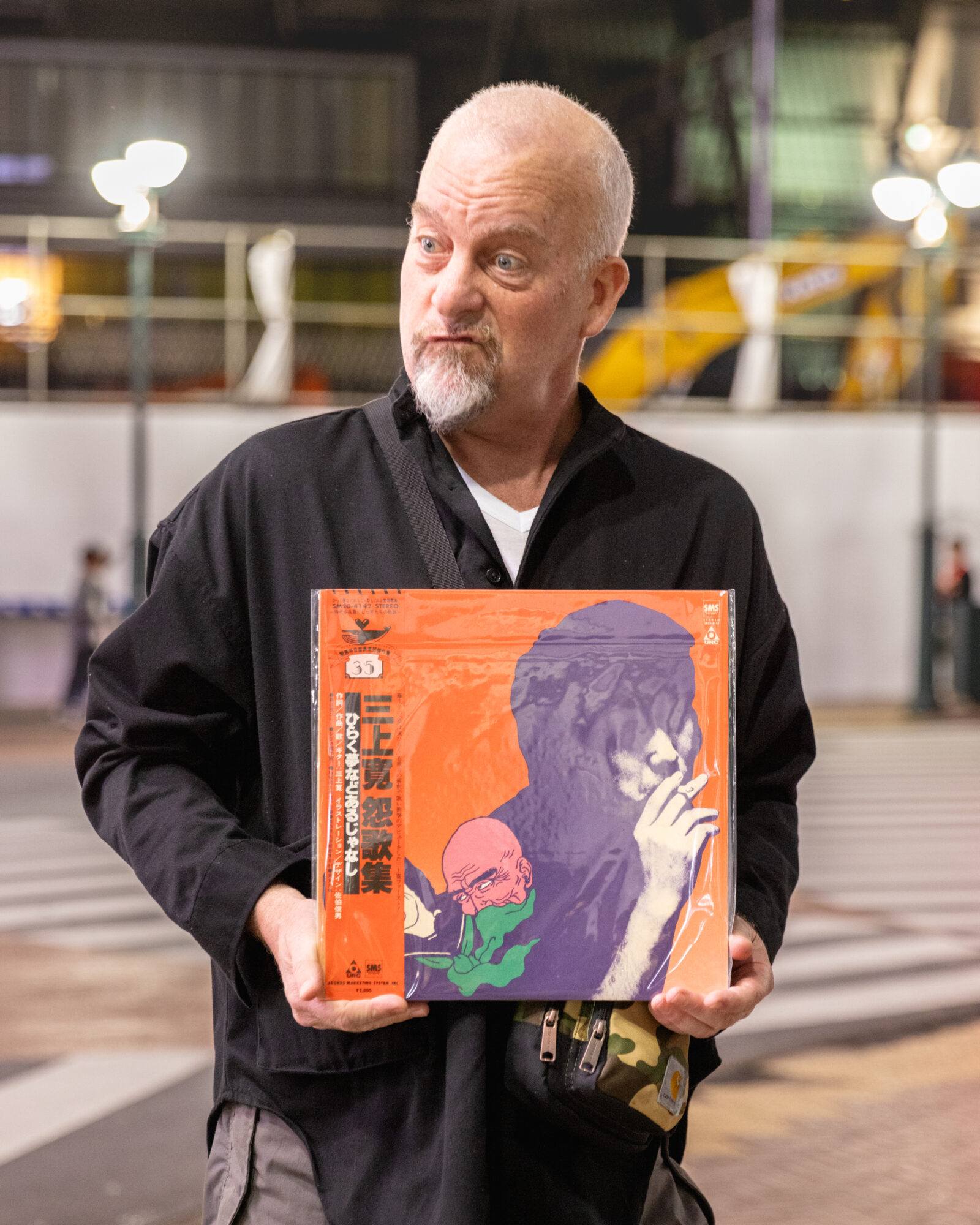 …which is what I did with Poet Taylor Mingon who, from what few but sparkling facets I have glimpsed whenever meeting him in recent years, can’t simply be dismissed here as being awkward in front of the camera. He’s much more likely striking a powerful and emotional pose, the beautifully menacing and distinctive “Mie” [見得] of Kabuki (and possibly Butoh) theatre. Performative, he might be offering us all an interpretation of how excellent he feels this Mikami Kan record is. I admit, I’m more than certainly intrigued now. I’ll have to give it a listen but I’m guessing I’ll need to prepare the pallet for this one, and will no doubt become more __(?) from having heard it.