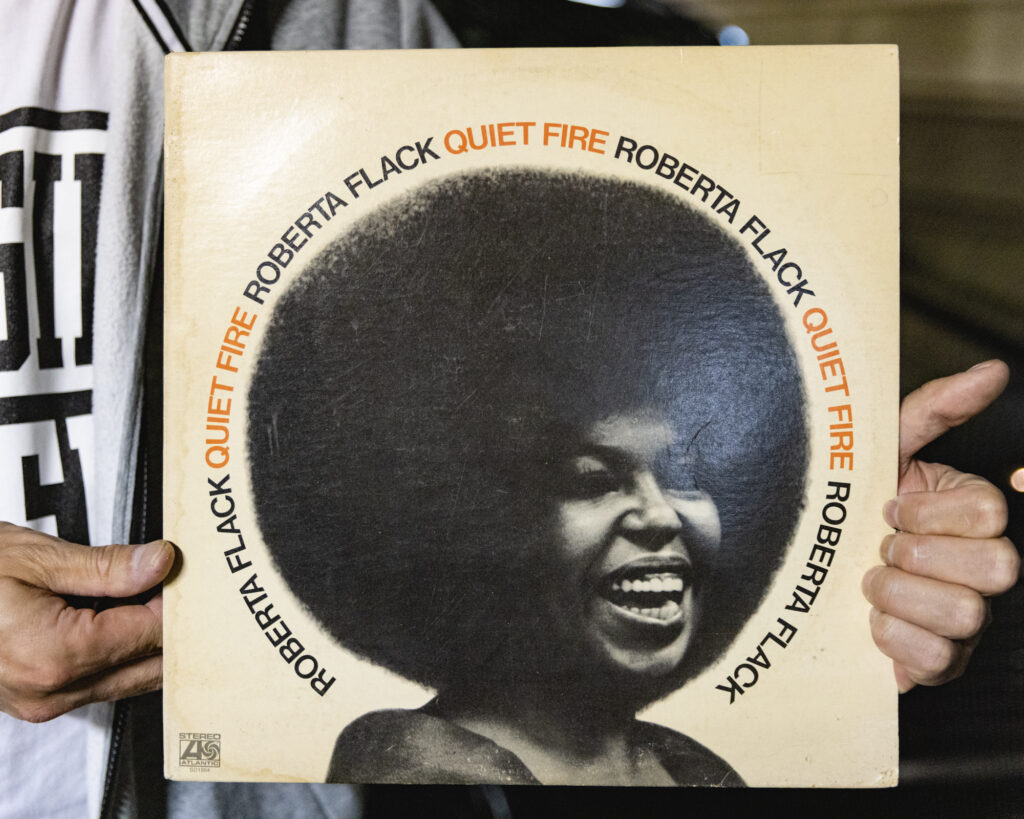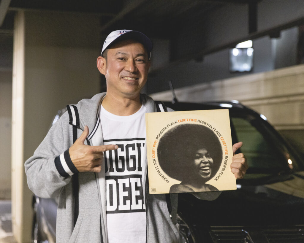 So I met Tets in the dimly-lit car-park under the Chuo Line. I strolled up on his glossy fresh jet-black Nissan X-Trail with decked-out rims and trim as he pulled out a handful of Roberta Flack records, including First Take, a record that’s been my collection and on heavy rotation since ‘98 (I just checked my copy and that’s the date the Bart’s price sticker says). First Take’s first track “Compared to What” is a tune I often kick off a DJ set with, just sets a certain mood the way it sneaks up on you. I mentioned to Tets Roberta Flack’s tune “Reverend Lee”, another first track off another album called Chapter Two, which always gets people grooving. We had a nice chat.